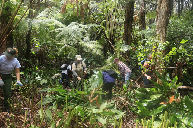 Volunteers help remove invasive, non-native plant species that prevent native plants from growing. Meet project leaders Paul and Jane Field at Kīlauea Visitor Center at 8:45 a.m. on any of the above dates. Wear sturdy hiking shoes and long pants. Bring a hat, rain gear, day pack, snacks and water. Gloves and tools are provided. No advance registration is required, and there is no cost to participate, but park entrance fees apply. Visit the park website for additional planning details: www.nps.gov/havo.