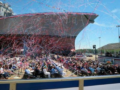 ship's sponsor, smashed a bottle of champagne on the bow of the future