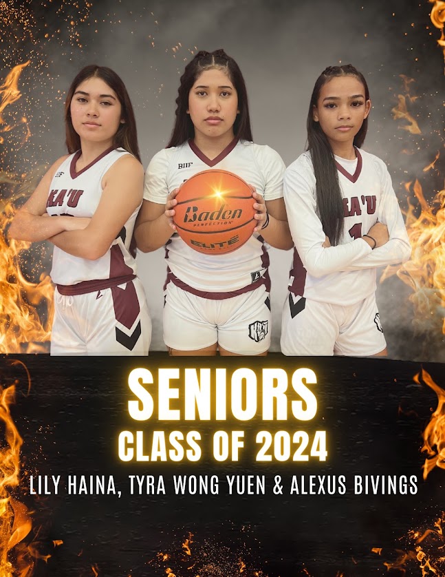 A FULL AFTERNOON AND EVENING OF BASKETBALL COMPETITION will be held at Herkes Kaʻū District Gym on Saturday, beginning with the Senior Lady Trojans basketball game against Hilo High at 2 p.m., celebrating the accomplishments of senior players Lily Haina, Tyra Wong Yuen and Alexus Bivings.