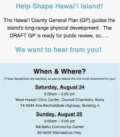 Give Input on the Draft General Plan for Hawaiʻi County on Sunday, Aug. 25, at Nāʻālehu Community Center from